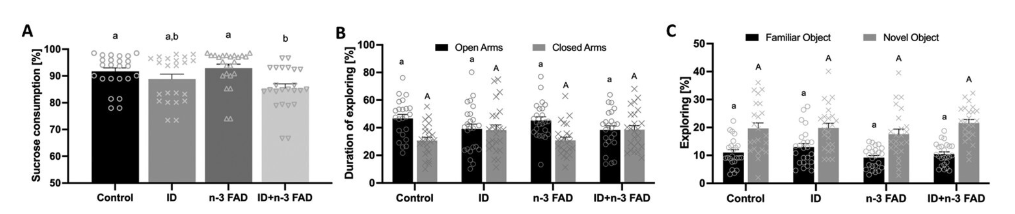 文章实验结果图二(来源于<<Iron and n-3 fatty acid depletion, alone and in combination, during early development provoke neurochemical changes, anhedonia, anxiety and social dysfunction in rats>>)